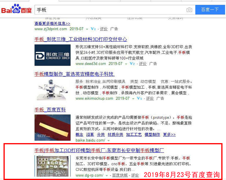手板廠 : 2019-02-28上線 2019-03-05百度第22(原為第4頁(yè) 第6位) 2019-03-13百度第5名 2019-03-19百度第3名 2019-03-25百度第1名