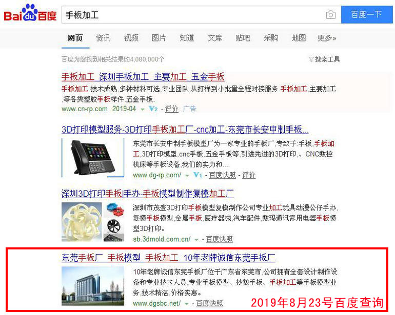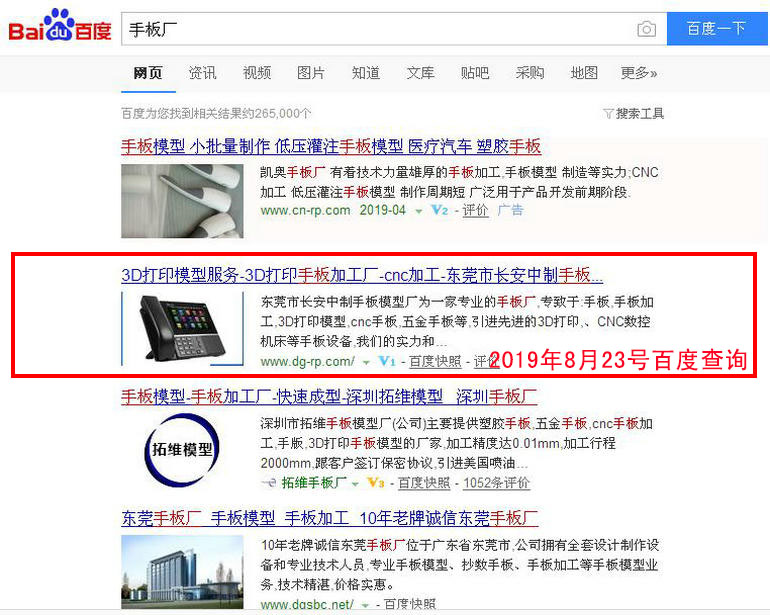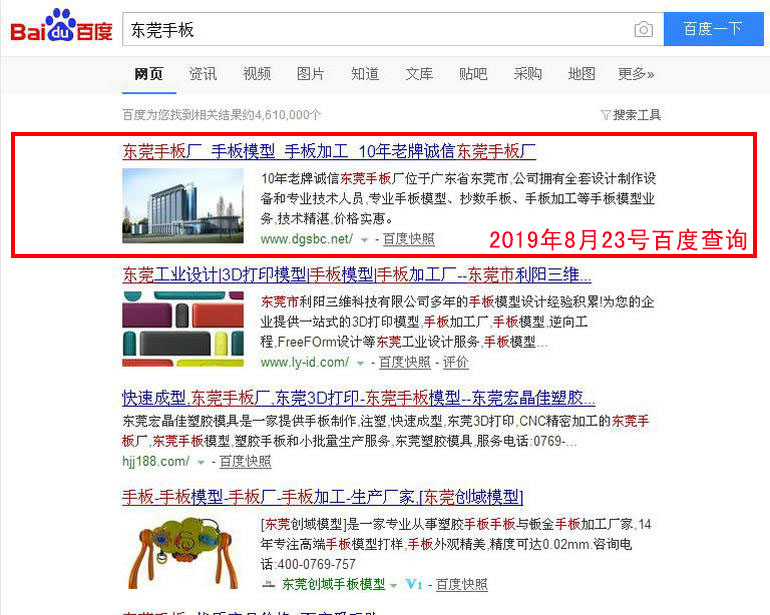 東莞手板廠 : 2019-02-28上線 2019-03-05百度第18名 2019-03-19百度第8名 2019-03-25百度第2名(排名第1名的網(wǎng)站www.dgsbc.net也是我公司管理優(yōu)化的網(wǎng)站)